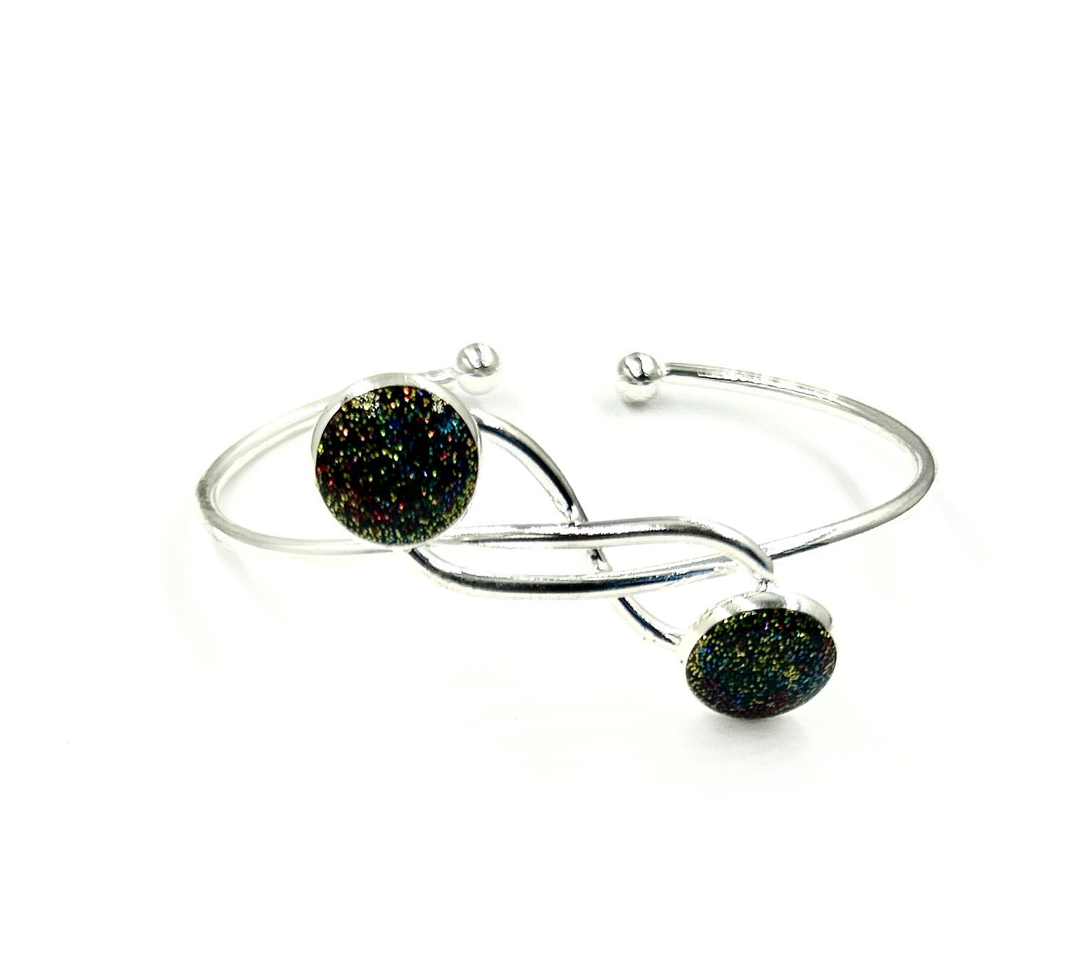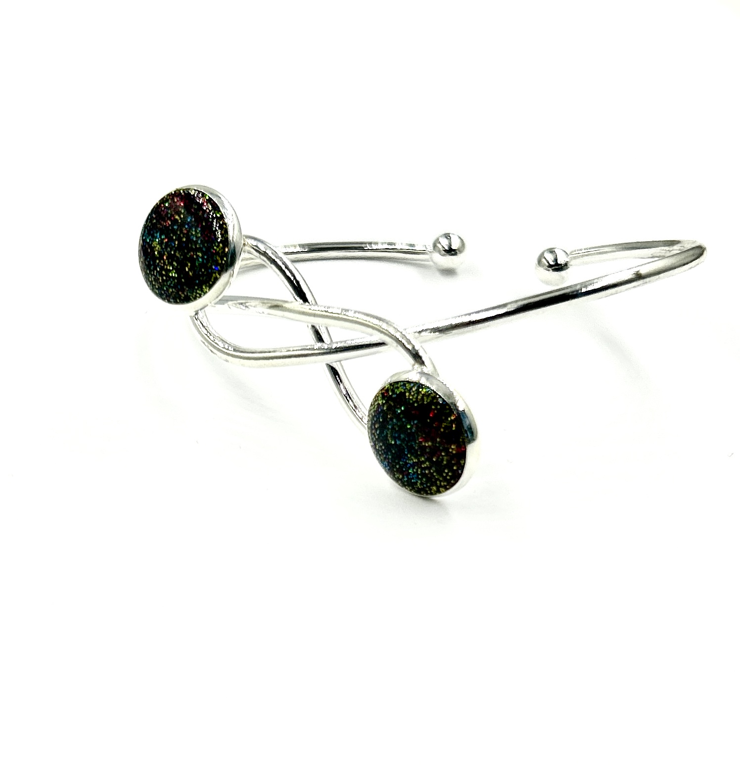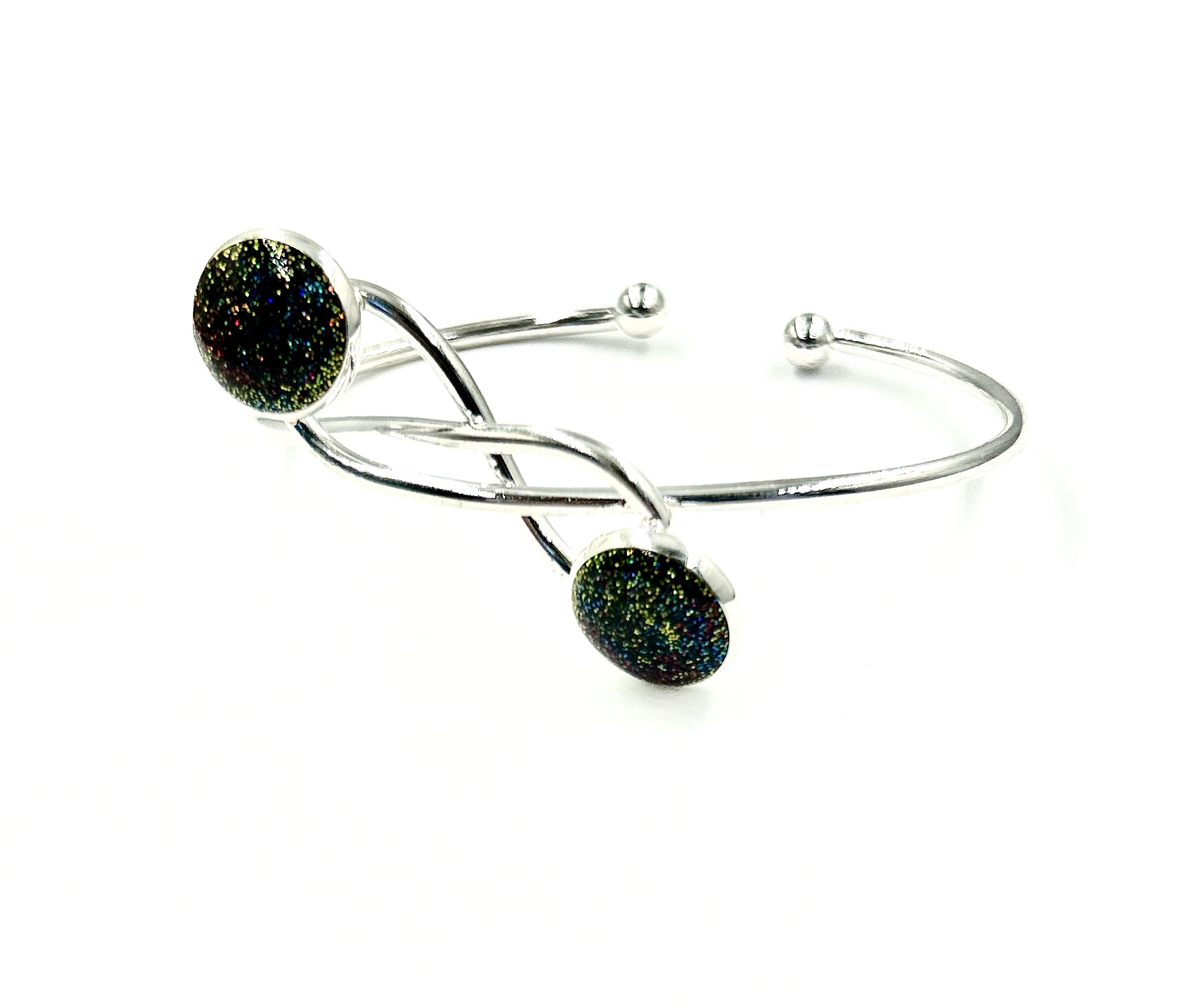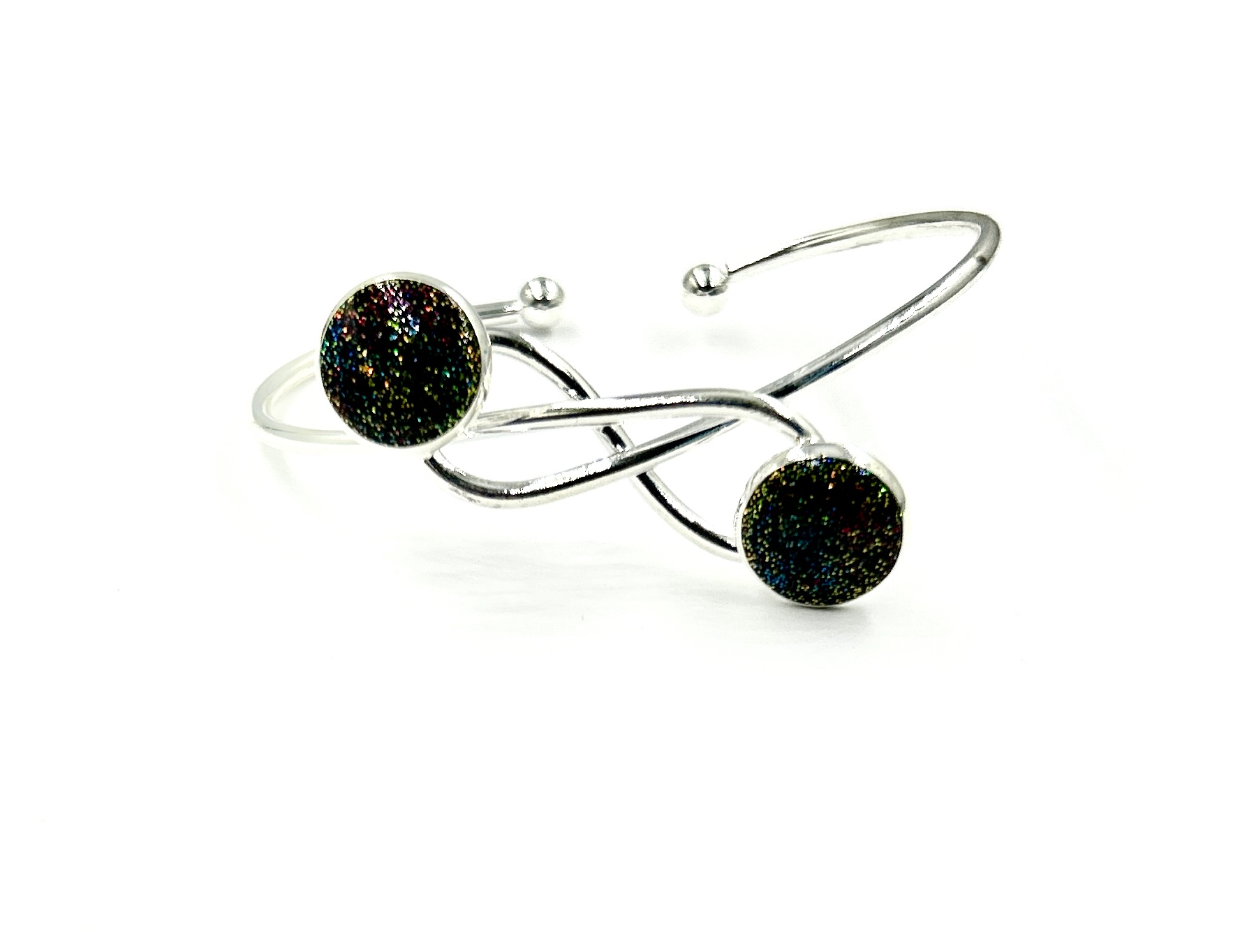 Bratara din otel inoxidabil cu insertie din rasina, Infinit Resin Collection,Handmade, Glittery