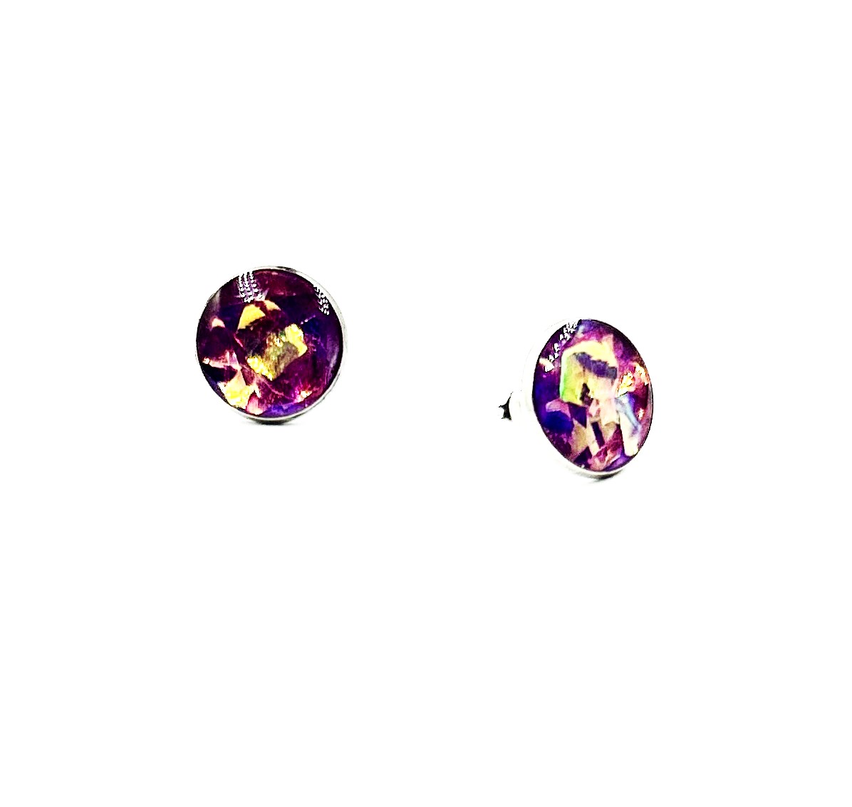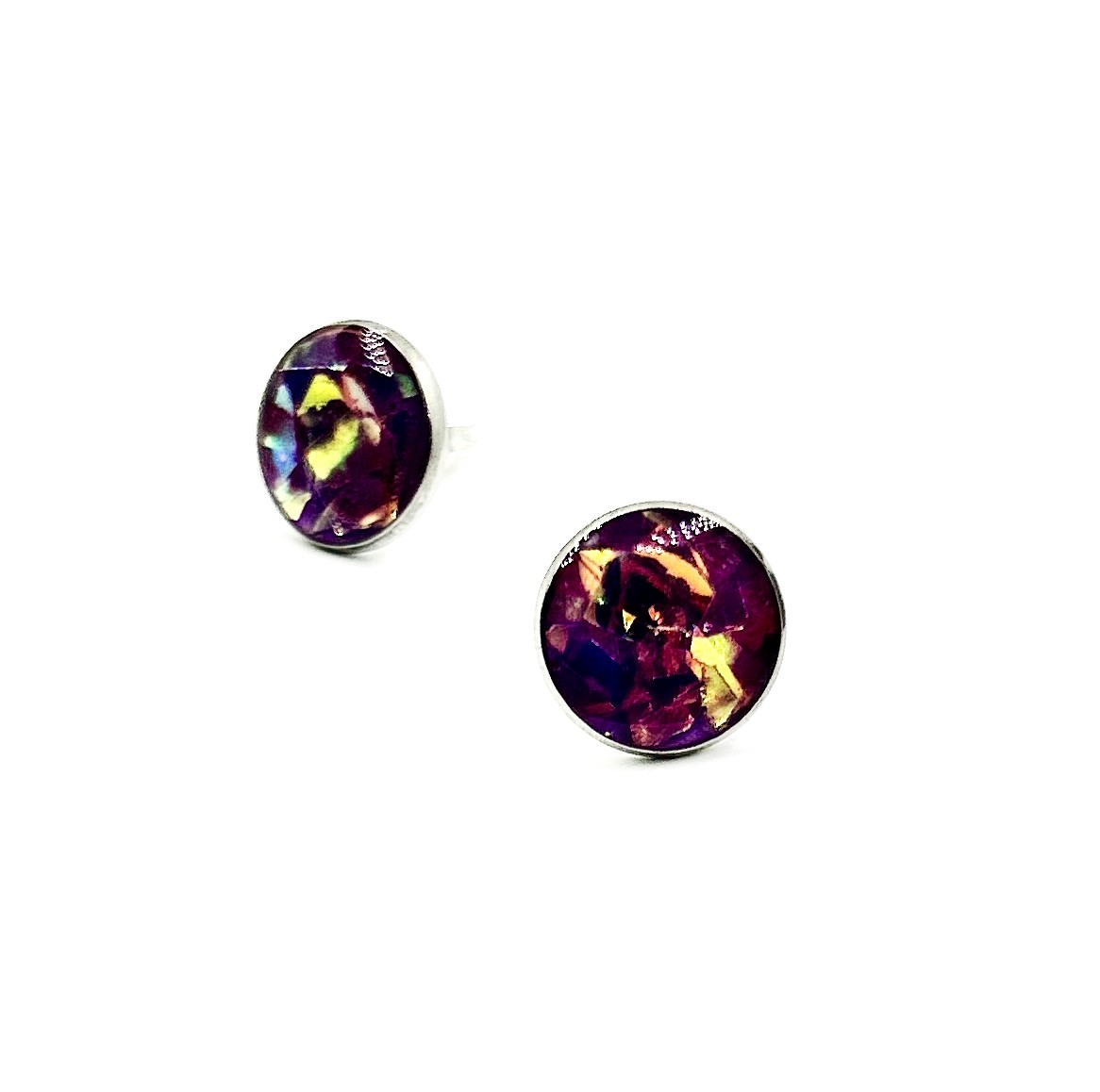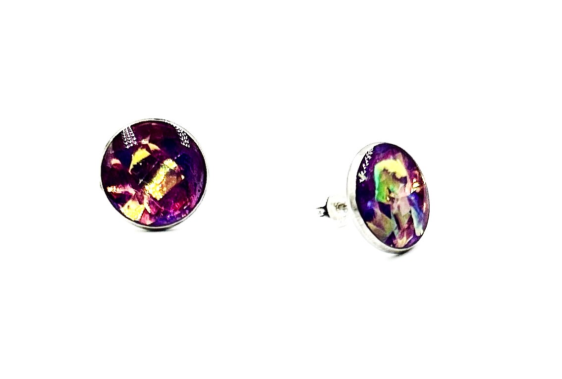 Cercei din rasina epoxidica, Foil Collection, Unicat, Ma Bijoux, Handmade, Multicolor/Mov