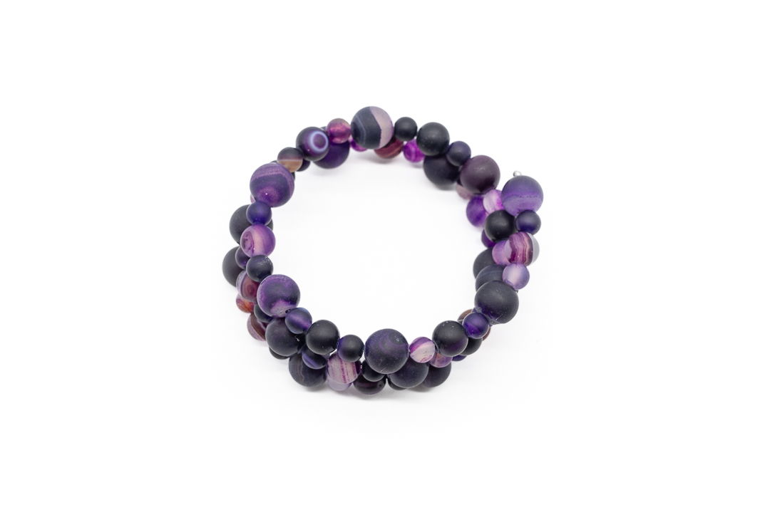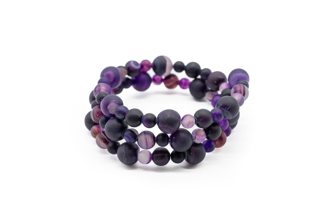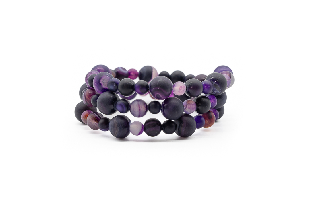 Striped agate este o piatra semipretioasa care tine energia negativa departe, avand semnificatia si propietatile cresterii concentratiei. Piatra de agat face parte din familia “Calcedony” fiecare agat individual se formeaza prin minerale care umplu o cavitate din roca gazda.