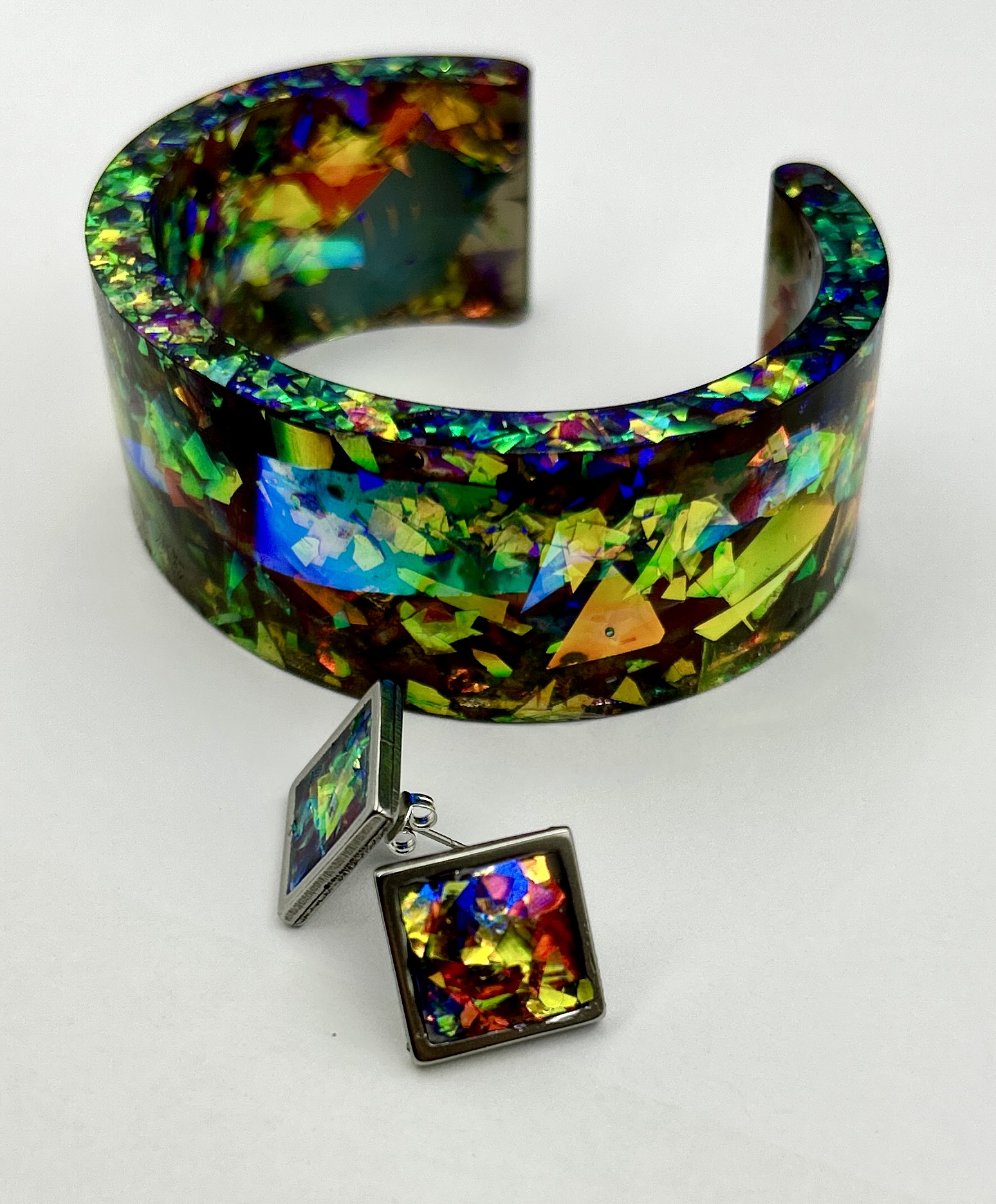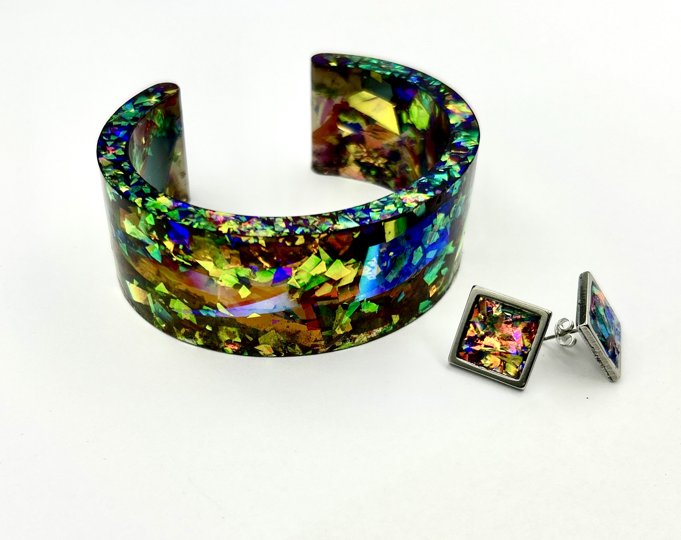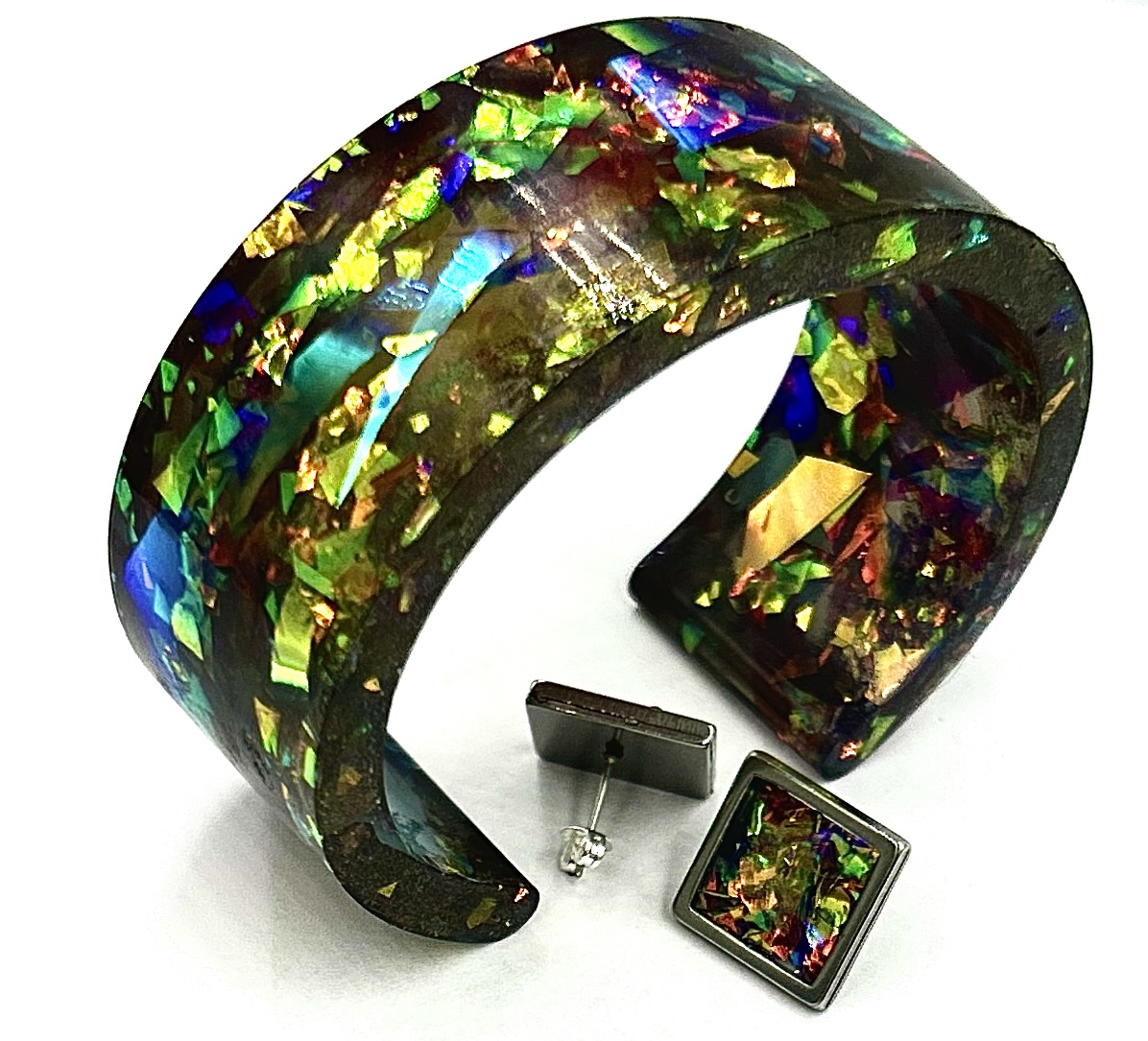 Set de bijuterii lucrat manual din rasina epoxy.